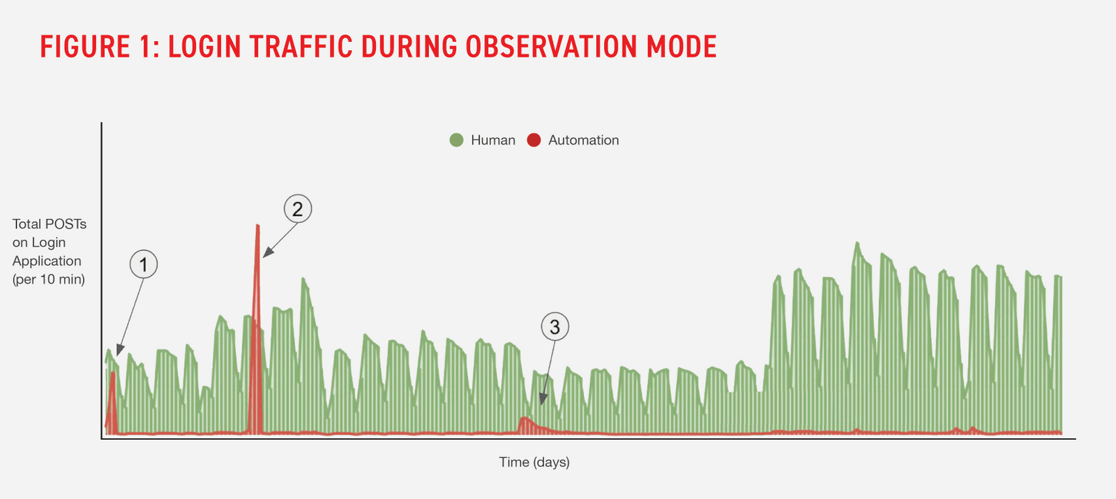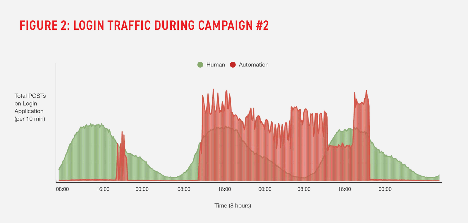 Over an eight-month period, the provider experienced three separate waves of large volume automation spikes in addition to sustained automated traffic. In some cases, attack traffic was more than 100,000 POSTs in a single day, which was a 50% spike over legitimate traffic. The provider also released a major native mobile API upgrade in the fall of 2017, which was frequently targeted by attackers.