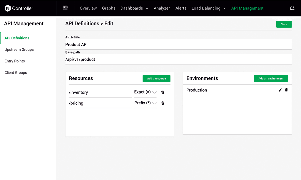 NGINX Controller is a control‑plane solution that manages the NGINX Plus data plane. NGINX Controller enables you to manage the entire lifecycle of NGINX Plus, as a load balancer, API gateway, or a proxy in a service mesh environment. With NGINX Controller’s API Management Module, you can define, publish, secure, monitor, and analyze APIs.