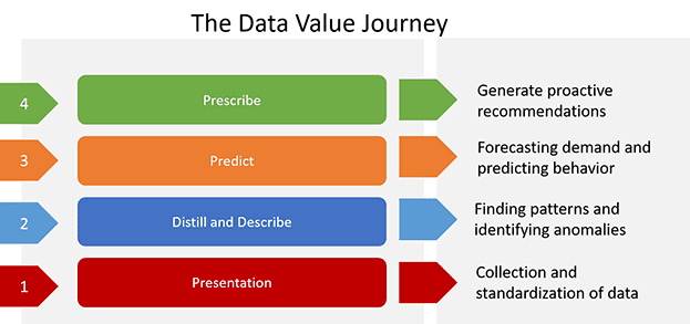 "Data is the new oil" or "Data is the grease of the digital economy." If you're like me, you've probably heard these phrases, or perhaps even the more business school-esque phrase "data exhaust monetization," to the point of being clichés. But like all good clichés, they are grounded in a fundamental truth, or in this case, in a complementary pair of truths. The first truth is the observation that the data byproduct of normal operational processes does contain latent value. The second, related but often unmentioned, truth is that the intensive process of distilling that latent value is a multi-step journey, though it does have natural stages of progression and maturity along the way.