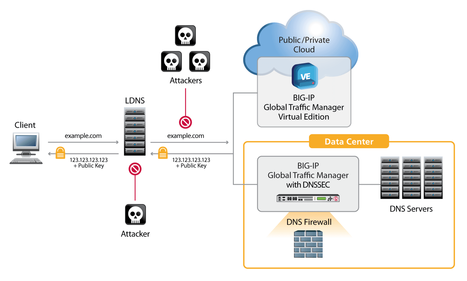 For global organizations with multiple data centers and an existing DNS infrastructure, BIG-IP GTM provides a range of services, from global server load balancing (GSLB) to full zone service with F5's unique DNS Express technology. DNSSEC signing ensures that clients aren't getting maliciously redirected.